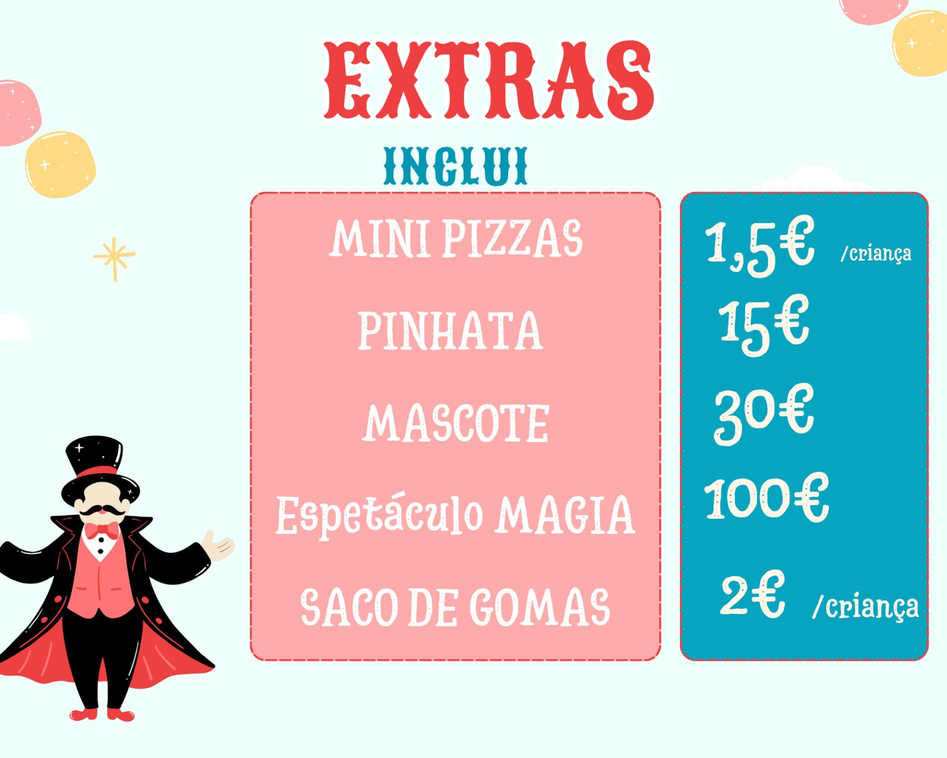As festas devem ter no mínimo 15 crianças.